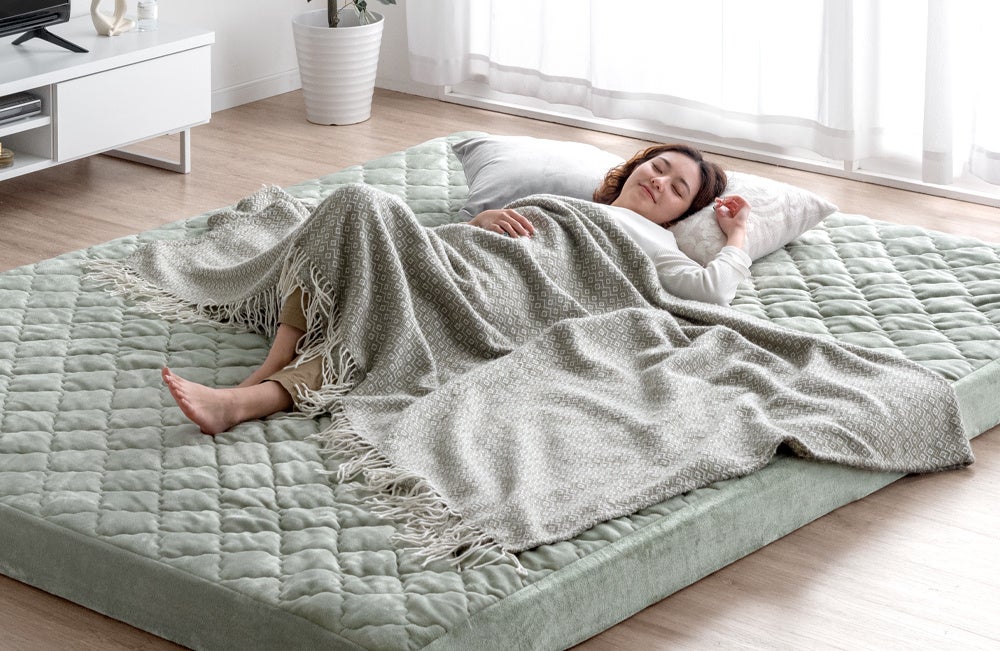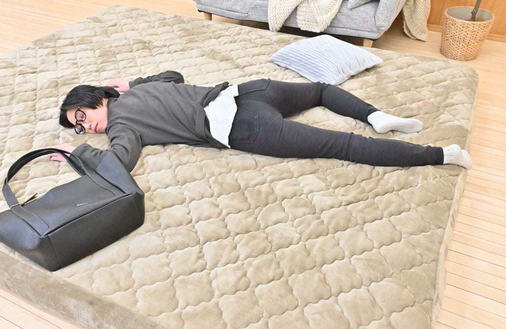 「分厚すぎ!?」超極厚100mmのカバーリングラグ『もはや、布団。』を開発し発売開始!190Nの純高反発ウレタン使用で格別の居心地を追求、リビング一帯を夢のリラックス空間に