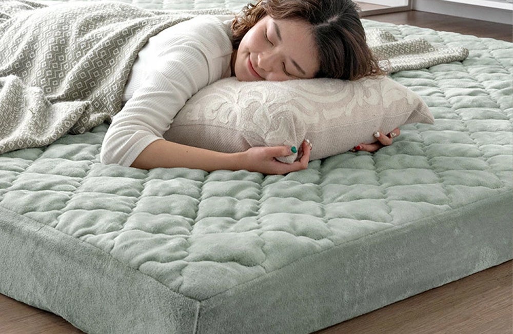 この『もはや、布団。』はその名の通り本当に布団の上で過ごしているかの居心地の良さを実現した製品です。厚みは100mmと桁違いの分厚さを誇り、リビング一帯を夢のリラックス空間に変貌させます。底つき感が全くなく、座椅子や座布団がなくとも快適にお過ごしいただけます。