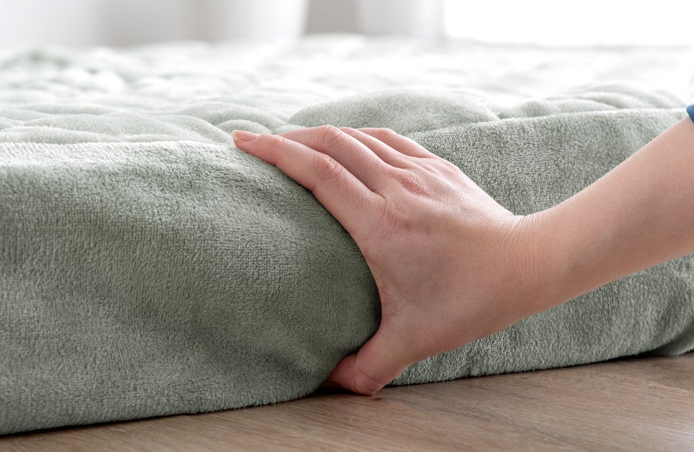 肌に触れるカバーの表地は1年中快適にご使用いただけるフランネル生地を採用しています。夏場は暑すぎず、冬場はひんやり感がない、さらさらでふわりとした触り心地です。
