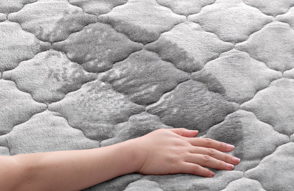 『もはや、布団。』はただラグを分厚くしただけではなく、本物の布団のように快適に眠ることができるよう居心地の良さにこだわった製品です。中材には当社で人気のマットレスにも使われている純高反発ウレタンを採用しています。高いクッション性と復元力が特徴で、過度に身体が沈みこむのを防ぎ、座っている際の姿勢や立ち上がりをしっかりと支えます。また、立ち上がったり歩いたりなどラグとしての使用する際に不便にならないよう、190N硬めの触り心地となっております。