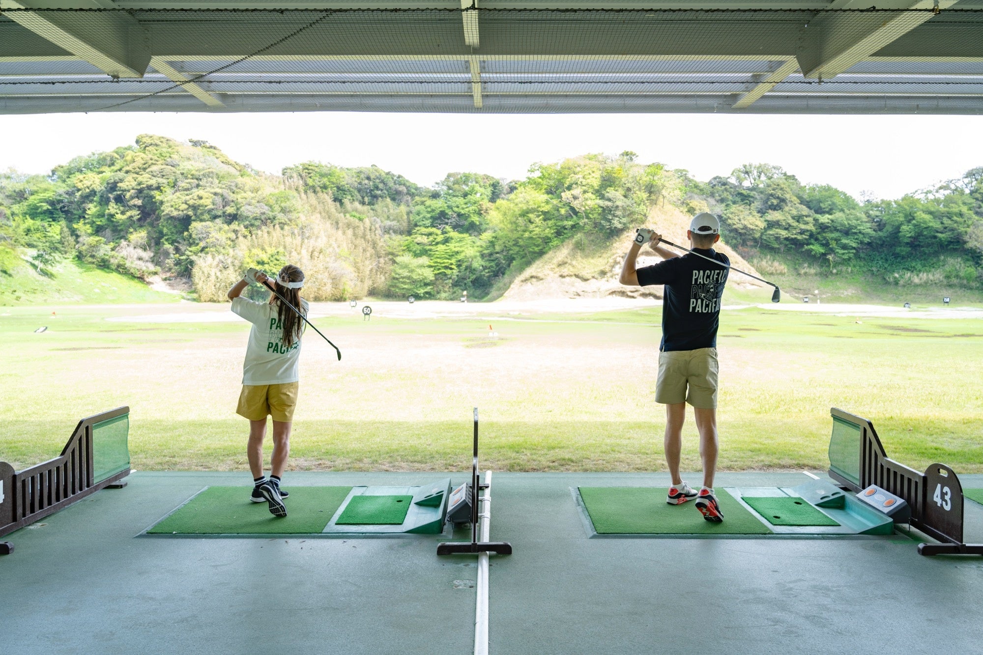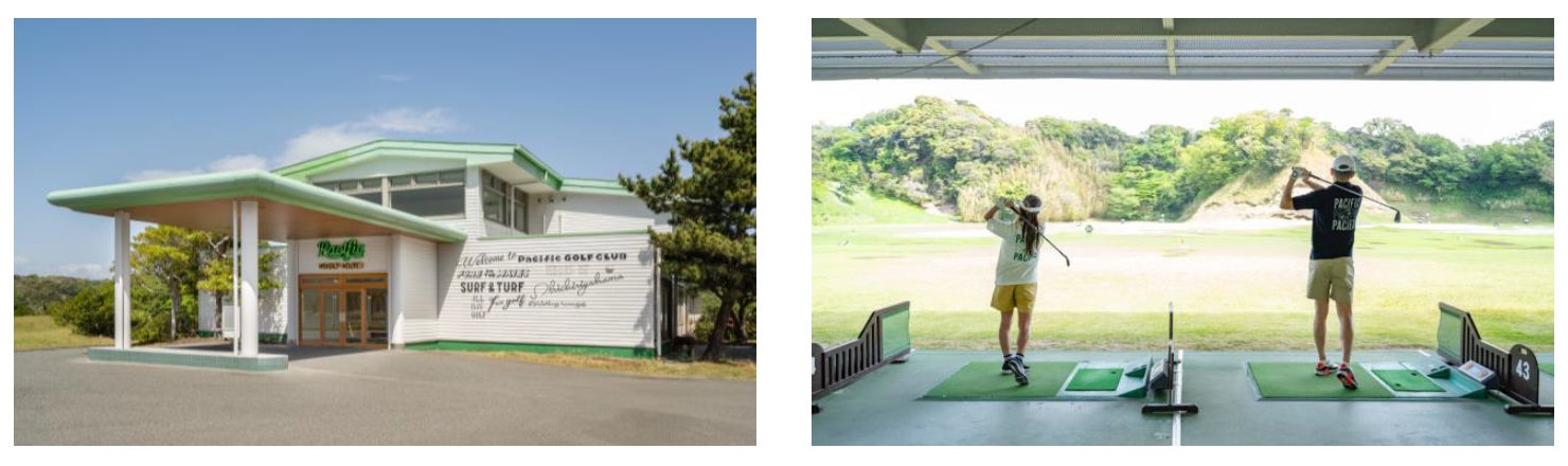 ドライブインカフェ「Pacific DRIVE-IN」がゴルフ場をプロデュースしたら?という架空のストーリーから生まれたゴルフブランド 〈Pacific GOLF CLUB〉がゴルフ練習にまつわる設備の他、コーヒースタンド、ピラティススタジオ、ブランドショップ、マッサージ、ワーケーションラウンジ(予定)、サーフィンスクール(予定)などブランドの想いが詰まった複合施設として展開いたします。