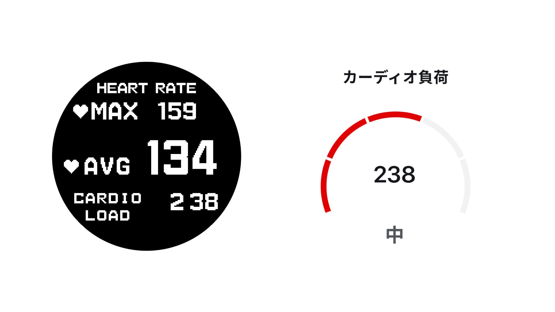ランニング時の最大酸素摂取量によるフィットネスレベルや、トレーニングの時間や強度によって心肺にかかった負荷など多彩な情報を確認できます。