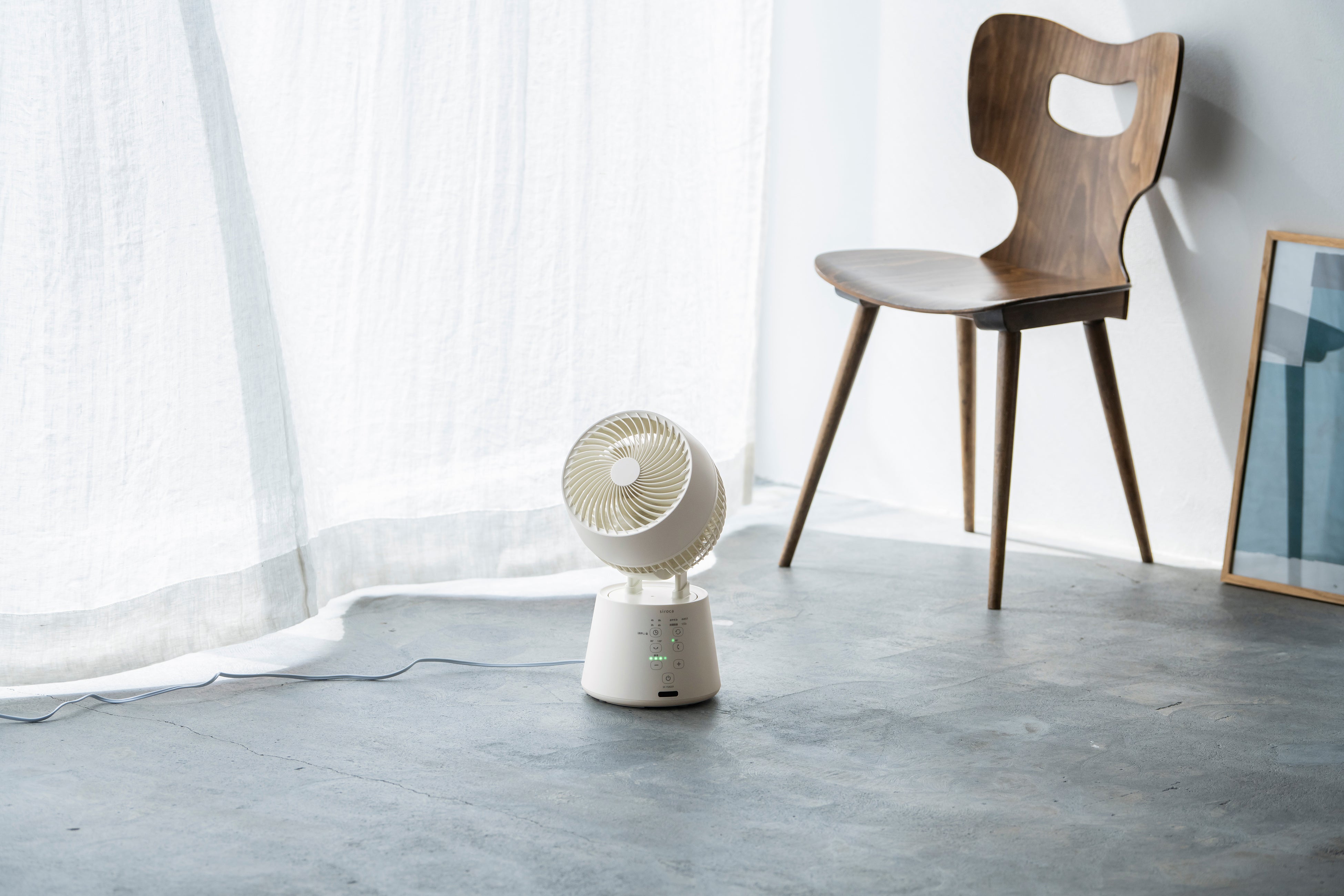 カラーだけではなく、サーキュレーターとしての性能や使い勝手にもこだわった本製品。卓上にも設置できるほどのコンパクトさと、部屋中すみずみまで送風するパワフルな風量を両立させた一台です。温度センサーで室温を検知して自動で運転を切り替えることで、熱中症対策などに役立つ「みまもりモード」や、首の向きを細かく調節して欲しいところに風を送る「ここピタ」機能といった便利な機能も搭載しています。