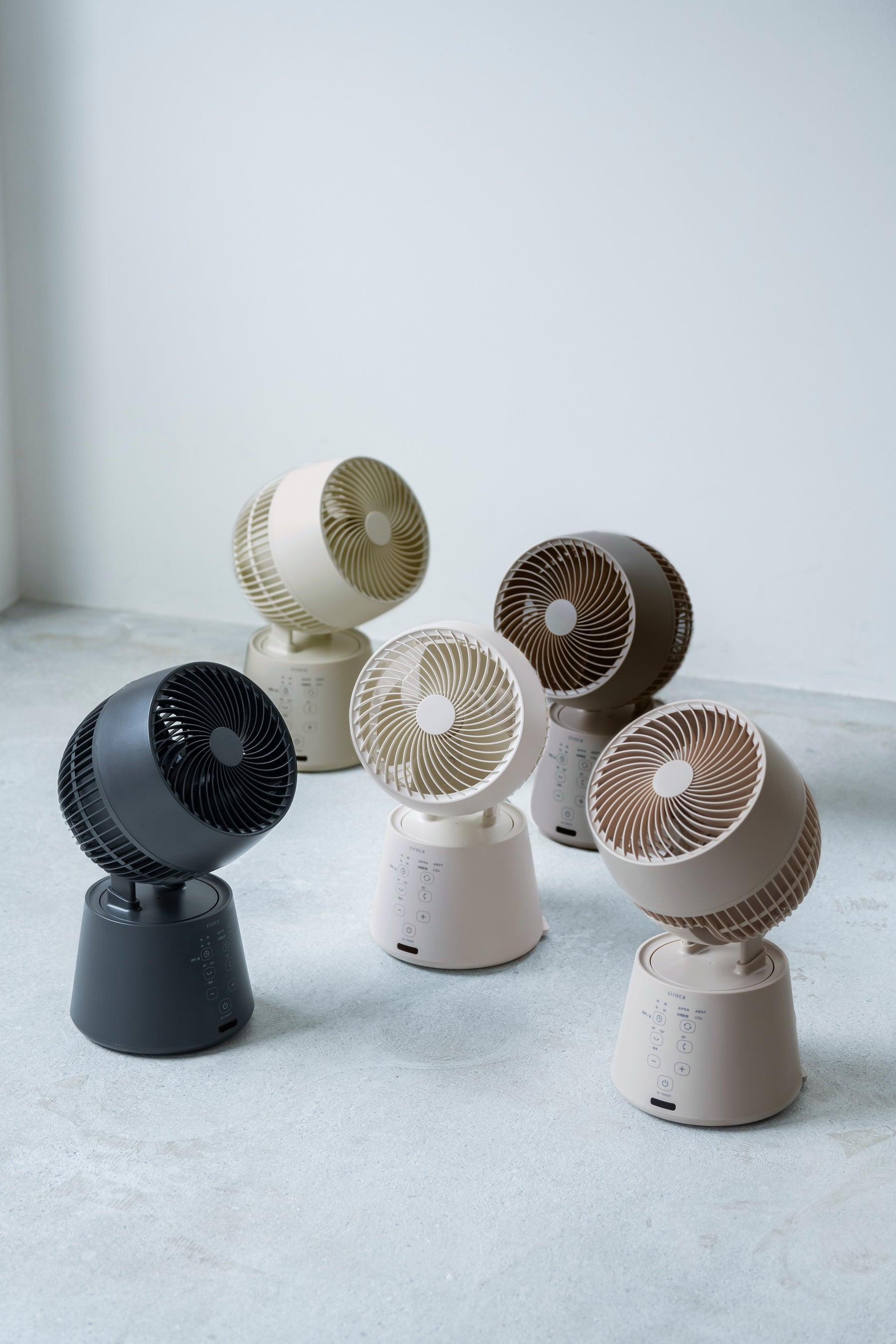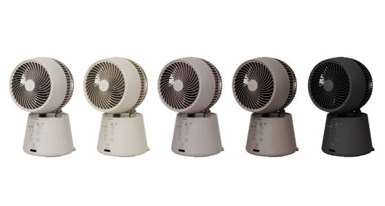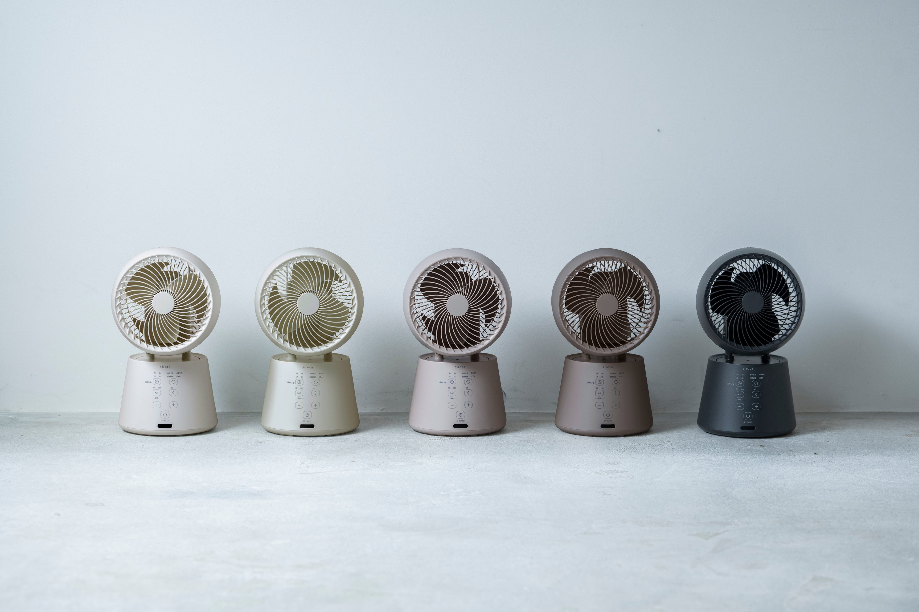 本年2026年のテーマは、日本の“侘び寂び”と北欧の“ヒュッゲ(=居心地のよさ)”を融合させた、世界中で人気のインテリアスタイル、「Japandi(ジャパンディ)」。グレーやベージュなどのナチュラルトーンを基調にした色選びで、穏やかな色合いの心地よい空間を作ることが「Japandi(ジャパンディ)」スタイルのポイントです。今回発売する「3Dサーキュレーター」のカラーは、「白磁(アイボリー)」「生成(ベージュ)」「亜麻色(グレージュ)」「煤色(モカブラウン)」「墨色(チャコールグレー)」のニュートラルな5色展開。絶妙な色差のカラーの中から、自分のお部屋に合う色や好みの色がきっと見つかります。