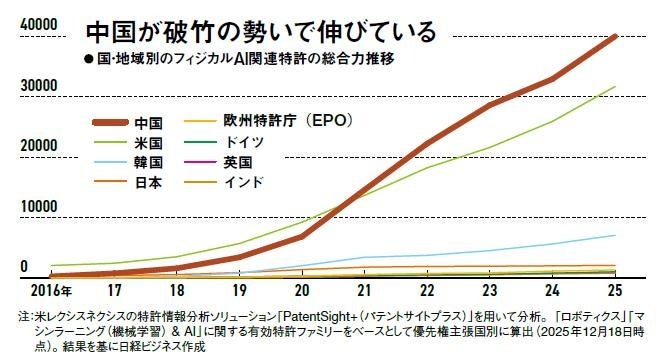 【日経ビジネス調査】フィジカルAI、特許競争力は中国が首位 企業別の特許総合スコアは中国企業5社・機関がトップ10入り