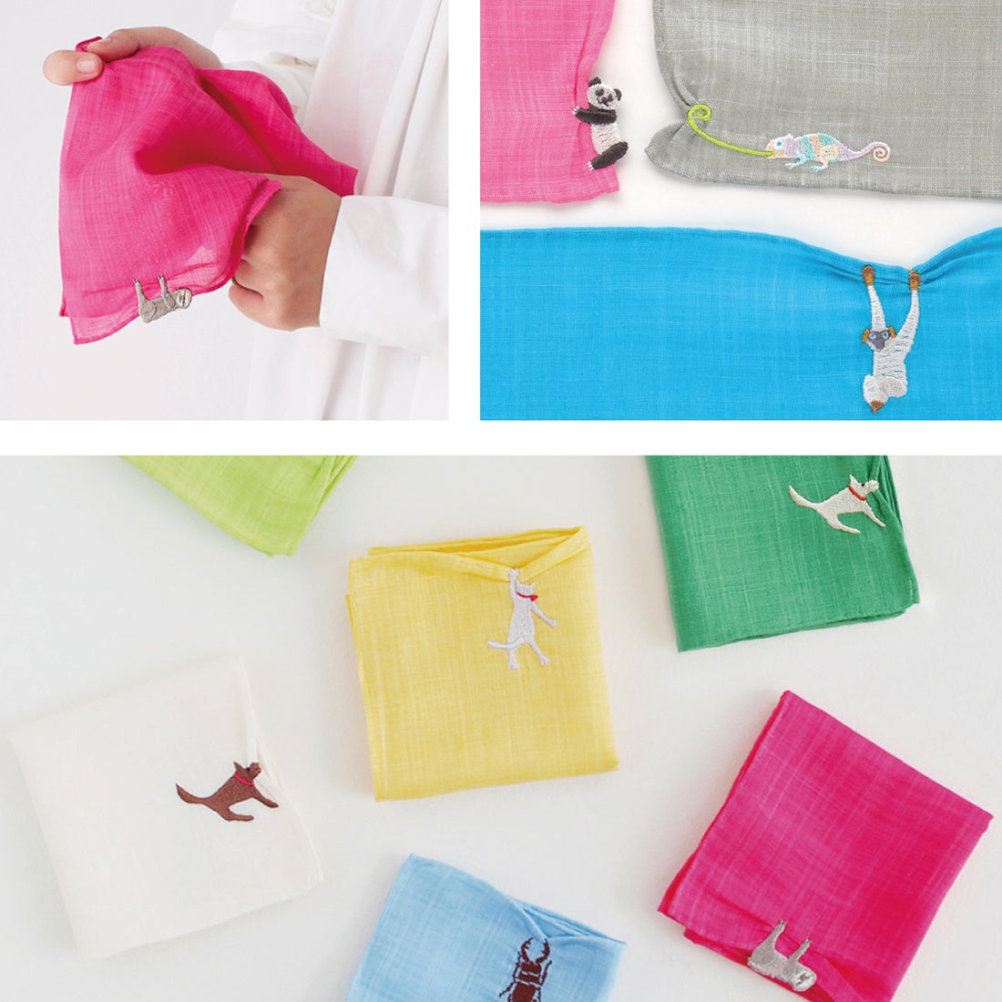 様々な動物がハンカチーフの縁を引っ張るユニークなデザインが2006年の発売以来人気の「HIKKOMI」シリーズ。