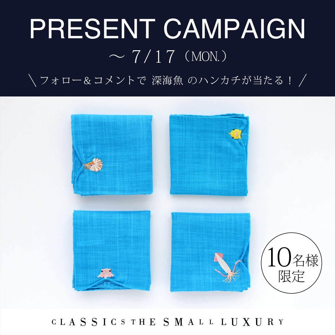 発売を記念して、公式Instagramではフォロー&コメントでHIKKOMI 深海魚のハンカチが当たる!プレゼントキャンペーンを開催します。