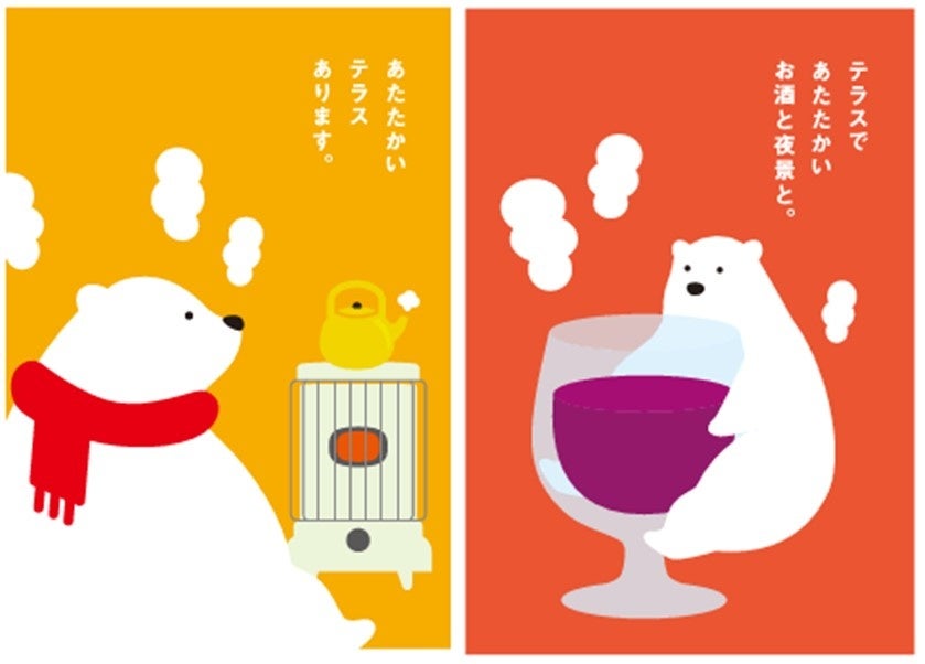 テラスの全エリアにはヒーターを完備。お食事やショッピングの後に、是非あたたかい空間で限定メニューと
