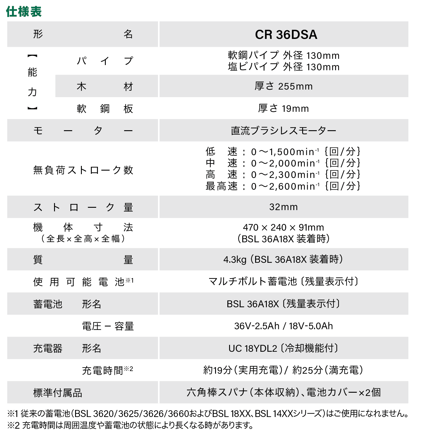 CR 36DSA:https://www.hikoki-powertools.jp/products/powertools/li-ion-cutter/cr36dsa/cr36dsa.html