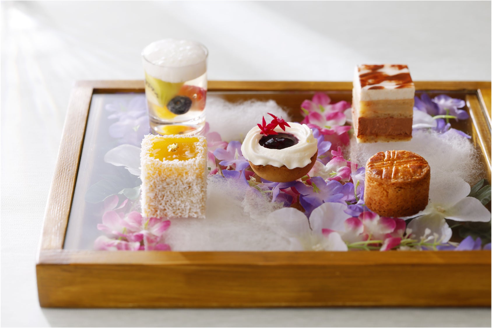 このほかにも涼やかな見た目の「彩りフルーツのジュレ」「ケーク・オランジェ」など全6種のスイーツをご用意いたします。
