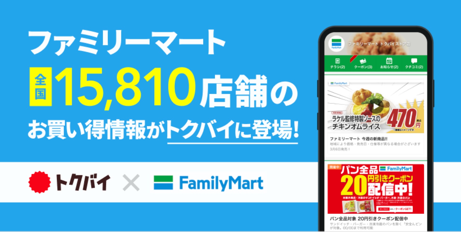 チラシ・買い物情報サービス「トクバイ」にファミリーマート15,810店舗のお買い得情報が登場!