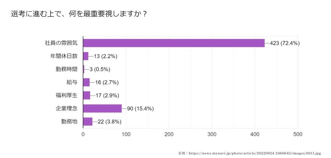 就活生の7割以上が、企業を選ぶ際に社員の雰囲気を最重要視している