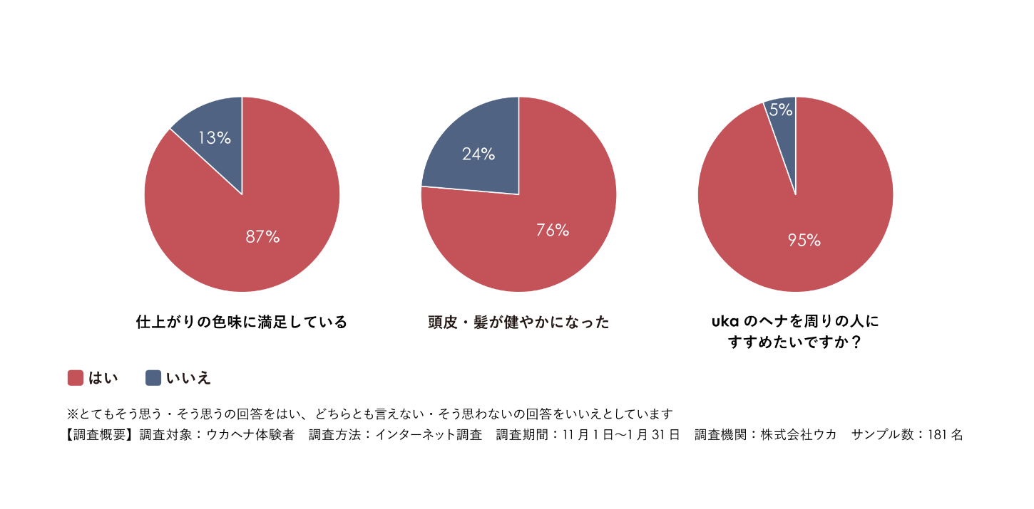【調査概要】調査対象:ウカヘナ体験者 調査方法:インターネット調査 調査期間:11月1日~1月31日 調査機関:株式会社ウカ サンプル数:181名
