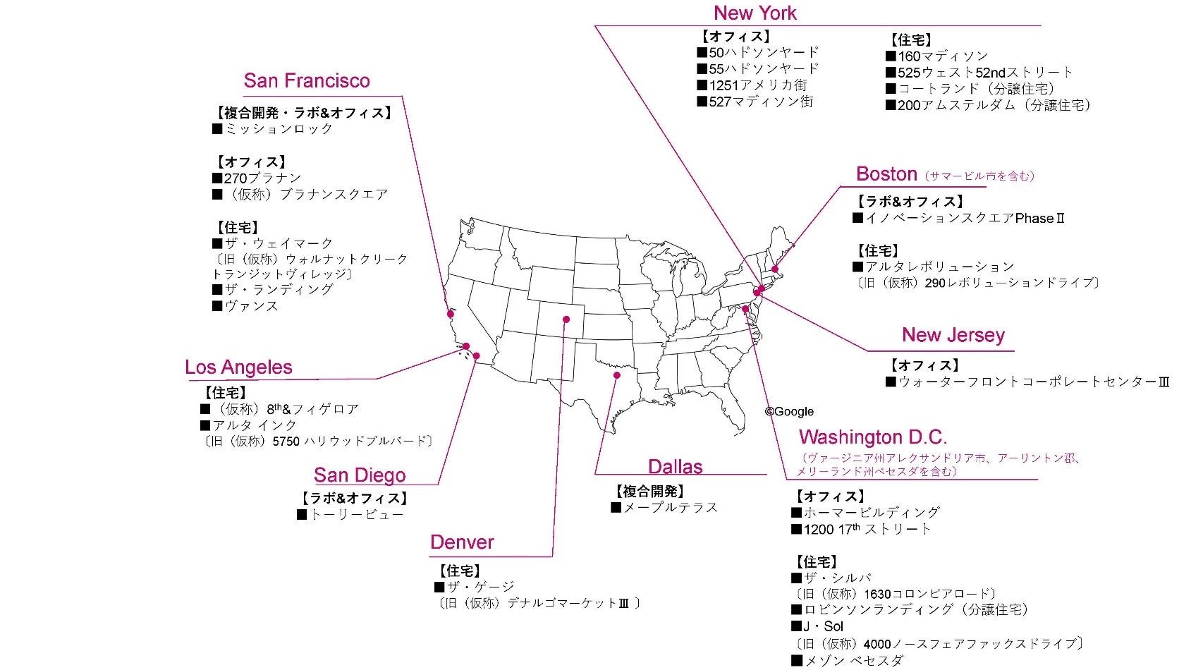 ● 米国ニューヨーク州ニューヨーク市マンハッタン地区において、高級分譲住宅「コートランド」の販売を開始、「200アムステルダム」の販売推進中。● 米国で広く展開している賃貸住宅事業に加え、ワシントンD.C.圏域(「ロビンソンランディング」)に続き、ニューヨーク市においても分譲住宅開発を推進。さらに多様な事業展開を目指す。