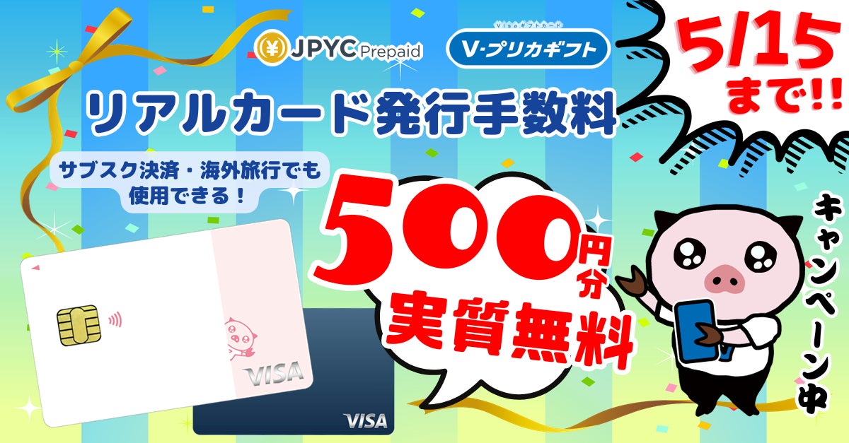 日本円ステーブルコインのJPYC|Vプリカリアルカード発行手数料無料キャンペーンを実施