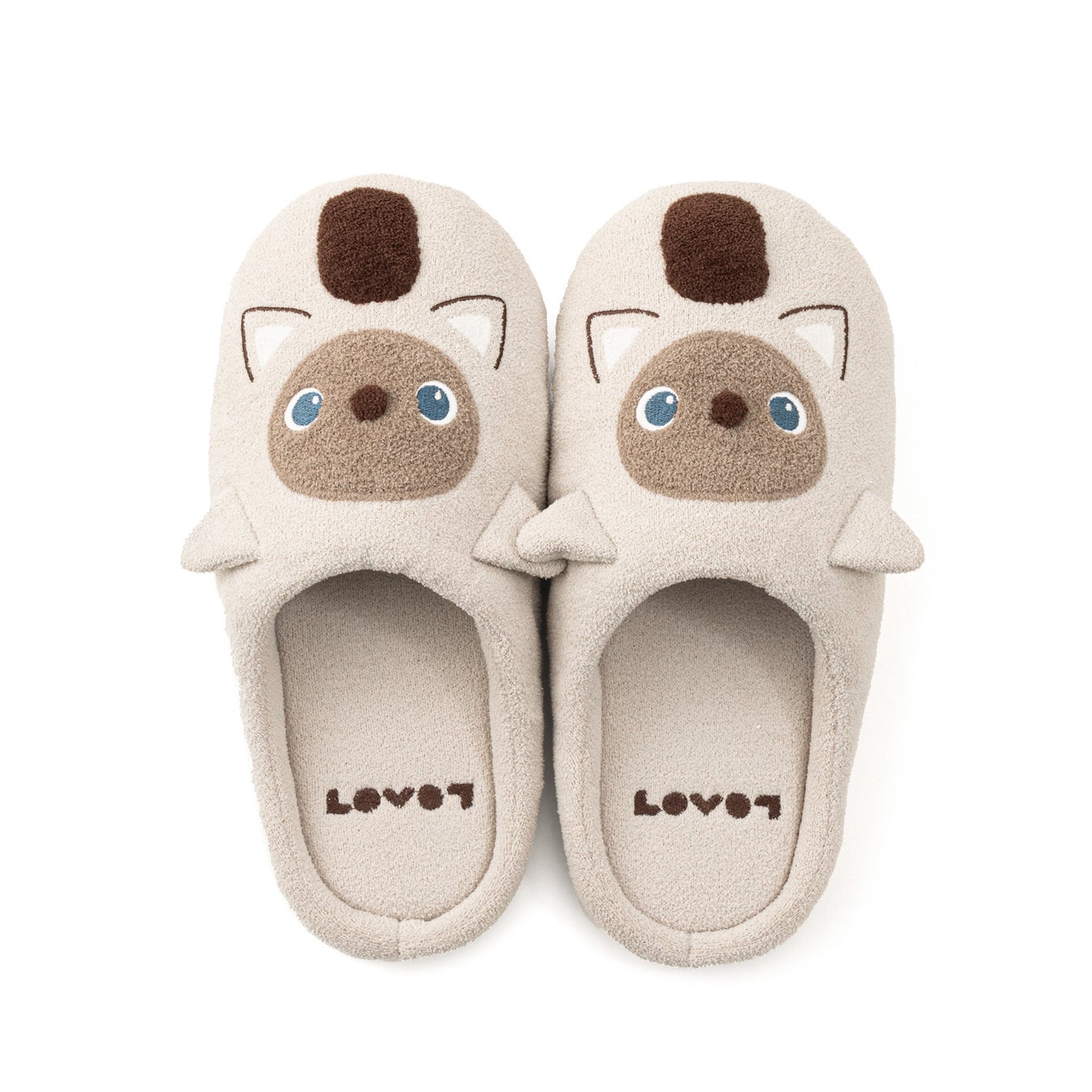足元を見るたびに愛らしい「ねこみみLOVOT」と目が合う、オリジナルのルームシューズは、デザインとディティールにもこだわり、刺繍とパーツの縫製を組み合わせて『LOVOT』の愛らしさを立体的に表現しました。脱ぐと見える『LOVOT』ロゴもデザインのこだわり。優しい風合いと肌触りで、履き心地がよく疲れにくいのも、日常的に使いやすく嬉しいポイントです。カラーは2色展開。色違いで揃えたり、ギフトにもおすすめです。