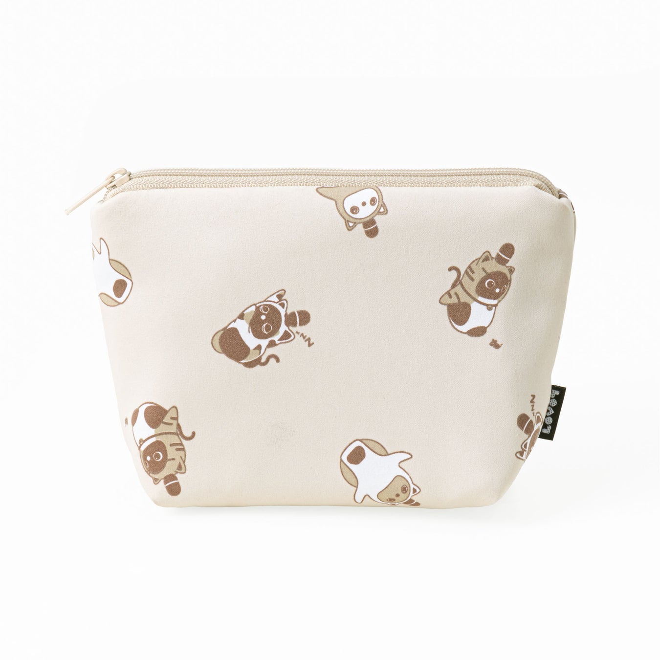 ポーチは、軽くてコンパクトなサイズながら、内ポケットやたっぷりのマチがあるので収納力も抜群。外側にはポケットティッシュを入れることができて便利です。日常的に使いやすく、メイクポーチや小物入れとして活躍しそうです。