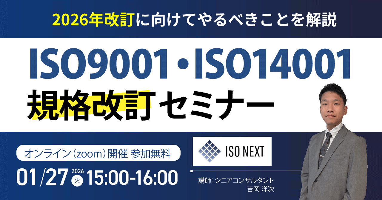 【1/27(火)15:00-16:00 オンライン開催】迫る2026年規格改訂に向けた実務セミナー:ISO9001・ISO14001の最新情報を公開
