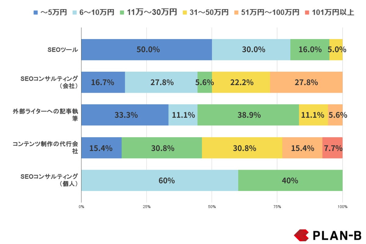 マーケティングコンサルティングやDXツールを提供する株式会社PLAN-B(東京都品川区、代表取締役:鳥居本真徳、以下「当社」)は、全国104社の企業を対象に「SEO対策にまつわる費用の実態調査」を実施いたしました。