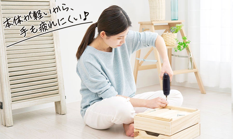 本製品は、プロが現場で使うような強力なインパクト(打撃)機能や、硬い壁への穴あけ機能は備えていません。その代わり、ご家庭での作業に必要十分な機能を詰め込みました。