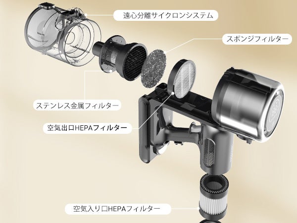 HEPAフィルター - 吸気口と排気口の2箇所に5段ろ過HEPAを搭載し、排気が綺麗で、花粉症の方にも優しい、二次汚染のない濾過を実現します。