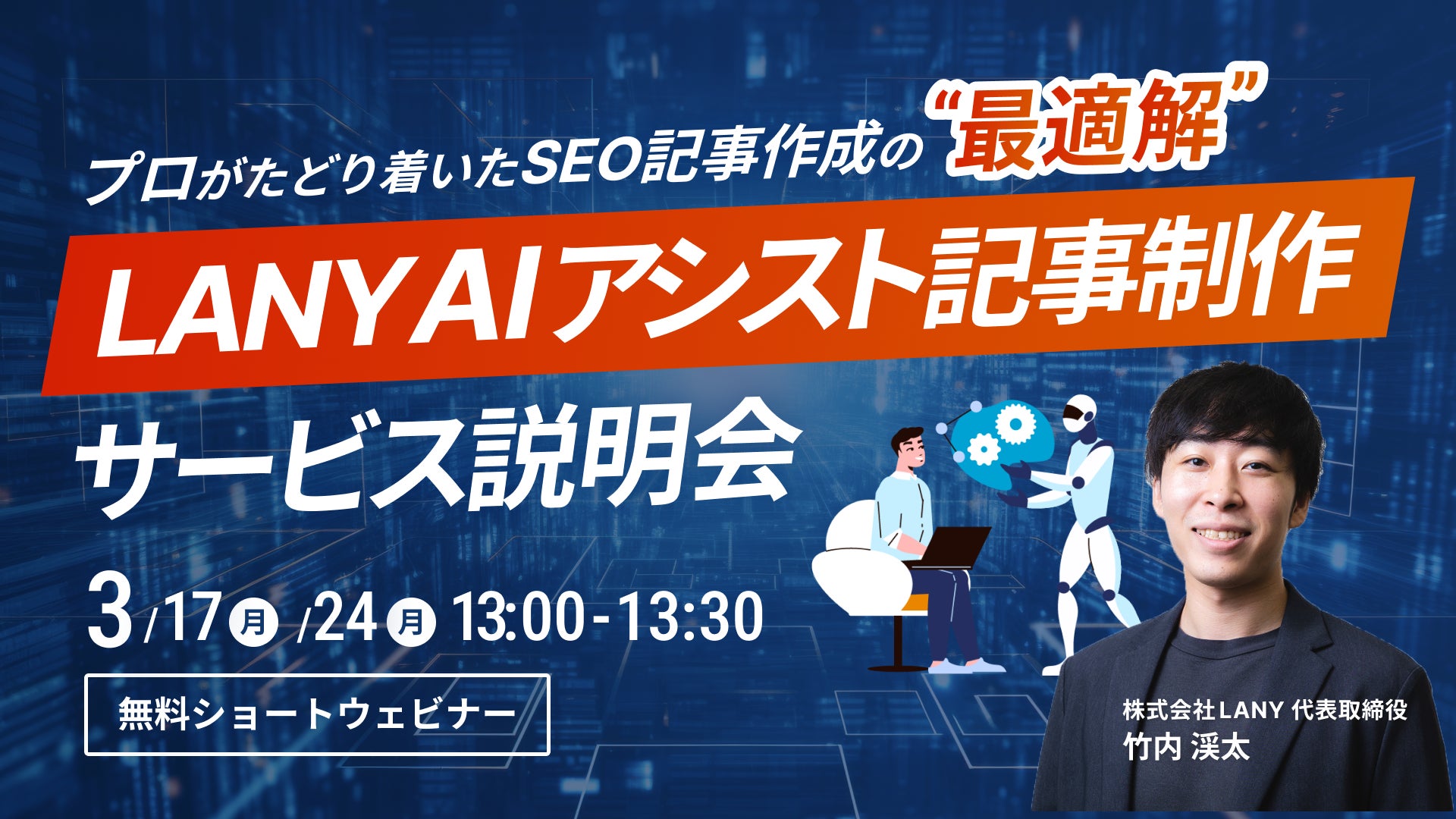 【無料ウェビナー】LANY AIアシスト記事制作 サービス説明会を3/17(月)・3/24(月)に開催