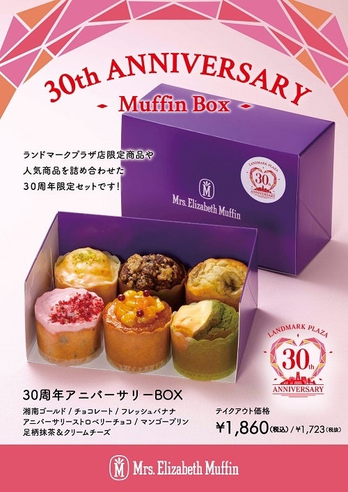 アメリカンマフィン専門店「ミセスエリザベスマフィン ランドマークプラザ店」横浜ランドマークタワーの30周年を記念し、4月28日(金)より「30周年アニバーサリーBOX」を販売