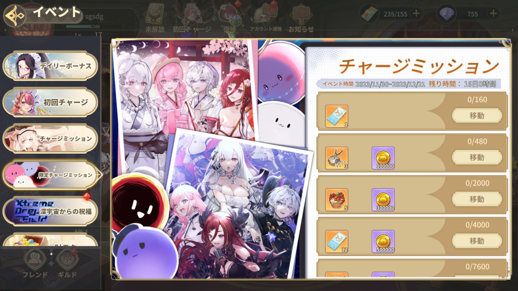 様々な報酬がゲットできるチャージミッションを期間限定で開催!
