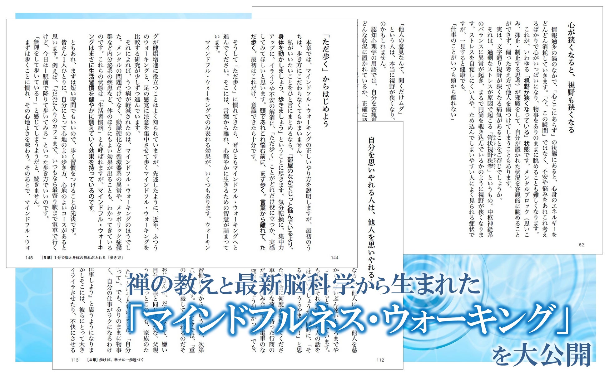 こうした脳の疲れをとるのに効果的なのが「歩くこと」。実は歩くことは、仏教でいえば「禅」であり、最新脳科学でいえば「マインドフルネス」なのです。