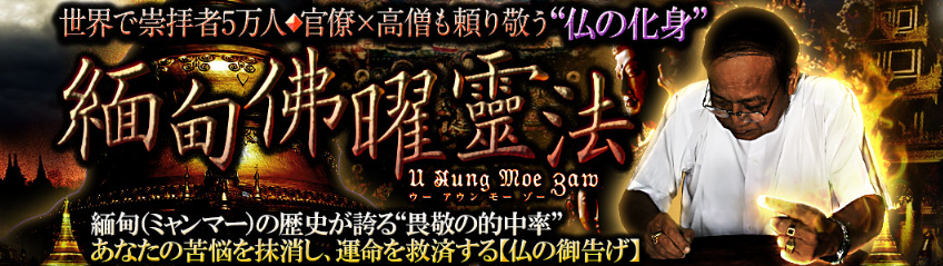 本サイトは、世界有数の占い大国である緬甸(ミャンマー)で“仏の化身”と呼ばれ屈指の実力を誇る鑑定師「ウーアウンモーゾー」による『緬甸佛曜靈法』を再現。