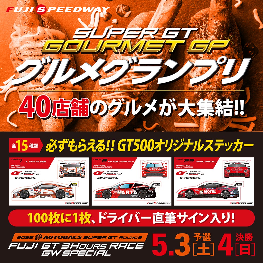 富士スピードウェイ全エリアの対象飲食店舗で1,000円ご購入ごとにGT500オリジナルステッカーが必ず貰える『必ずもらえる!SUPER GTオリジナルステッカープレゼント』キャンペーンを実施いたします。