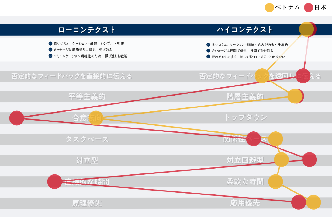 ベトナム人同士だとハイコンテクストである傾向が強いですが、相手がベトナム人以外だと異なってきます。
