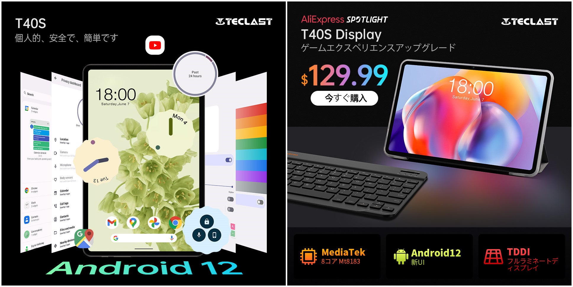 Teclast Tシリーズ新製品「T40S」の初売キャンペーンは今開催します。5月14日(日)まで、Aliexpressで限定$129.99(約1万7千円)購入できます。10.4インチの2Kディスプレイ、13MP+5MP新設計のデュアルカメラ、及び8GB+8GB拡張+128GB超大容量を備えた「T40S」をご期待ください。