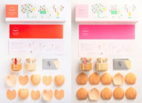 2種の餡をお好みで合わせるパリパリモナカ。土づくりからこだわって栽培したりんごとももを使用しています。