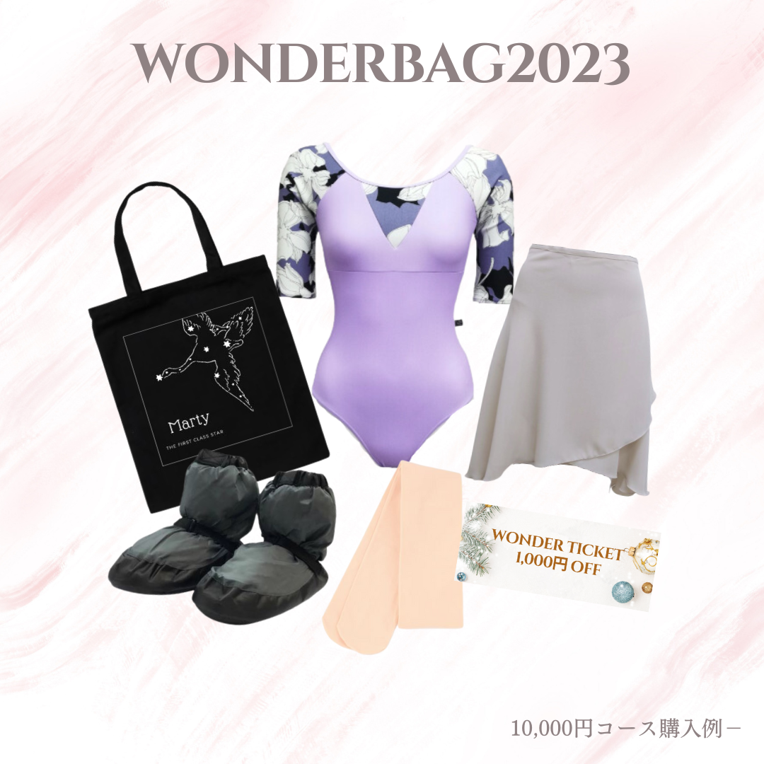 たくさんの商品の中から好きなアイテムを選んで作ることのできるオリジナル福袋です。 「好みに合わないデザインの商品やサイズが合わない商品が入っていたらどうしよう」という心配がなく、お気に入りのアイテムだけを詰め込んでいただける福袋となっています。 さらに各コースには、次回以降ご使用いただける「ワンダーチケット」が特典として付いています。消耗品も多いバレエのレッスン、タイツやシューズの購入・はたまた新作ウェアの購入など、様々な用途でご使用ください。