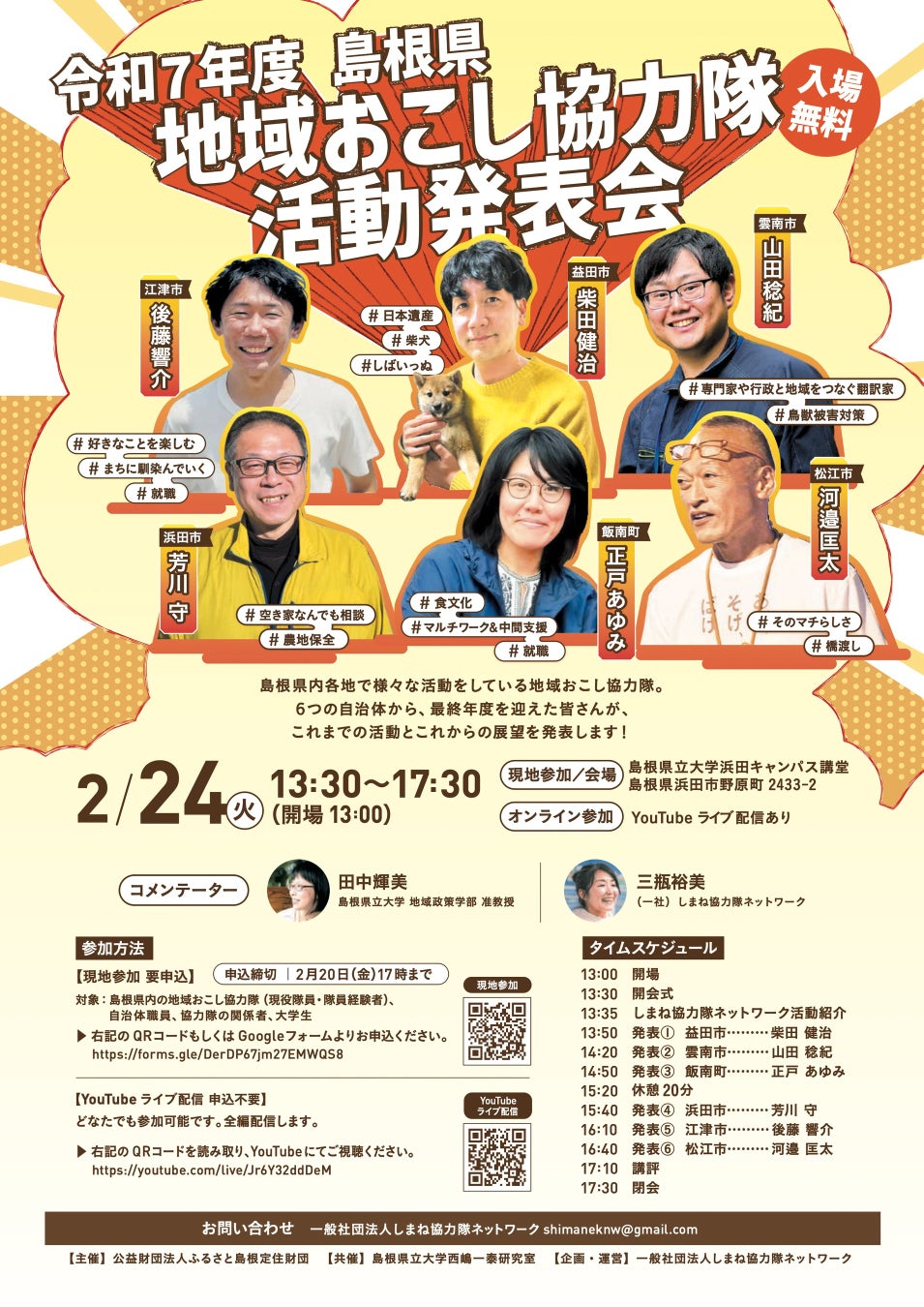 令和7年度 島根県地域おこし協力隊活動発表会を2月24日(火)に開催決定【島根県立大学】