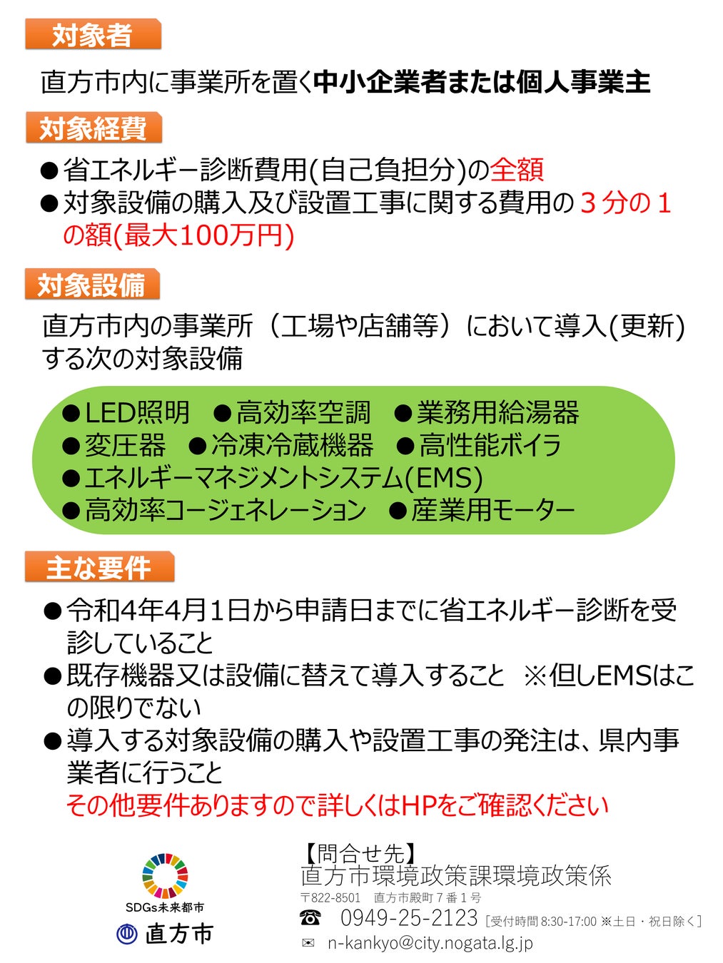 【直方市】市内事業者向け 省エネ設備導入費等補助金