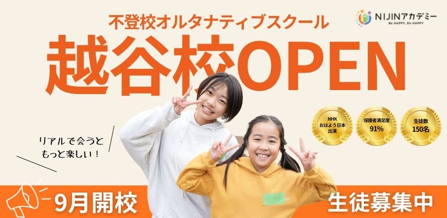 株式会社NIJIN(本社:東京都江東区、代表取締役:星野達郎)が運営する不登校オルタナティブスクール『NIJINアカデミー』はこの度、リアル教室越谷校を開校しましたことをお知らせいたします。