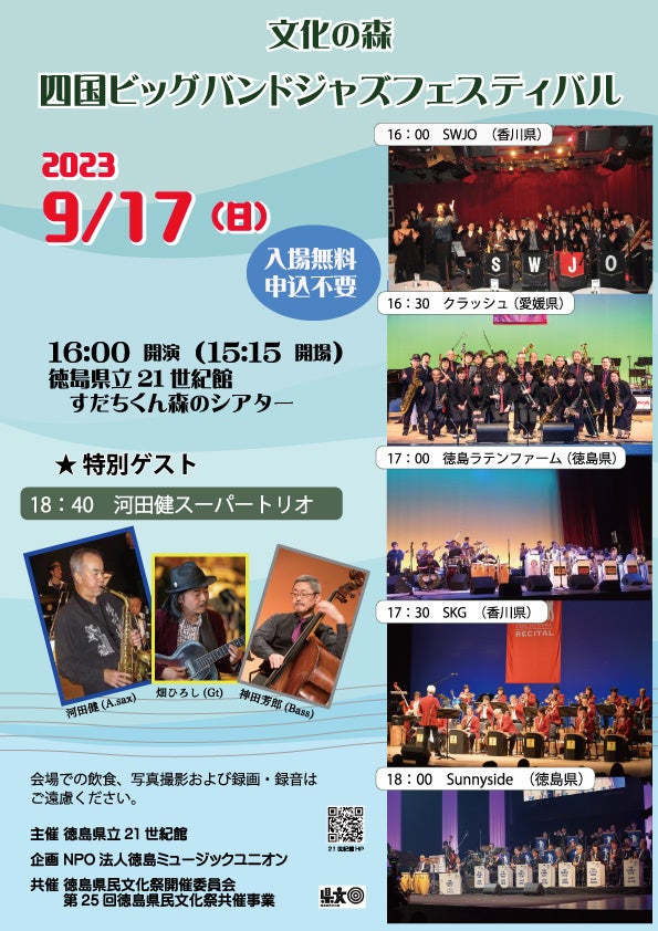 【徳島県】「文化の森 四国ビッグバンドジャズフェスティバル」9月17日(日)開催します