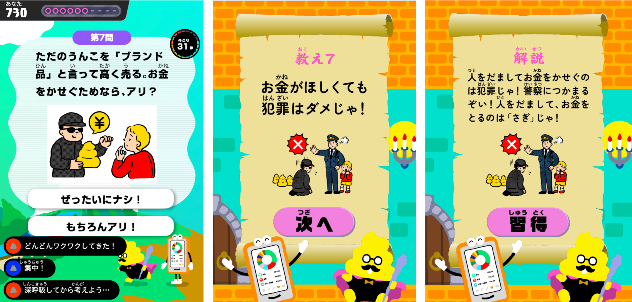 マネーフォワードの創業10周年の節目に「柔軟な思考を持つ子どもたちにこそ、自分の人生や社会を豊かにするお金について学ぶきっかけを」と、うんこドリルとタッグを組み、ともに制作したオンラインゲーム『Money Forward×うんこドリル お金の心得』。