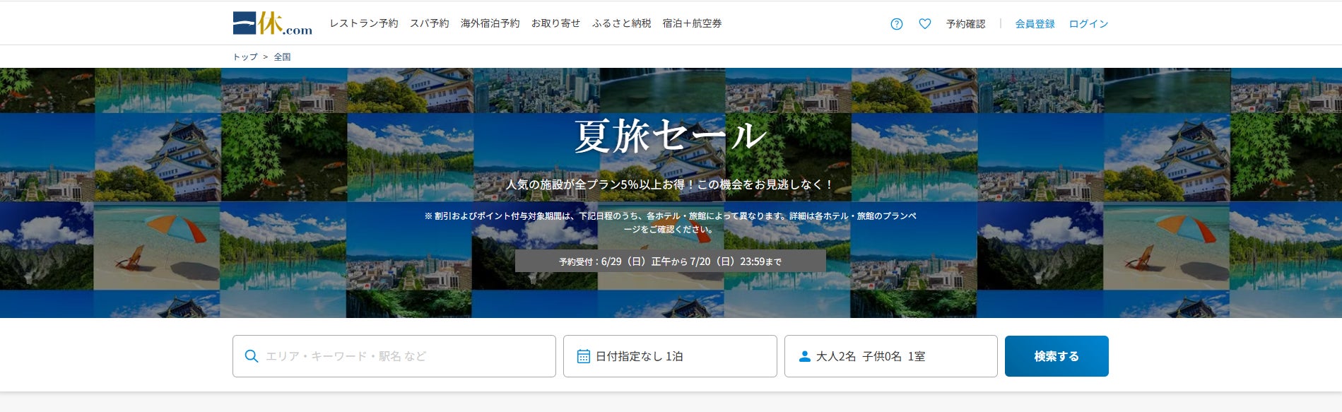 『一休.com』で「夏旅セール」を6月29日(日)より期間限定で開催