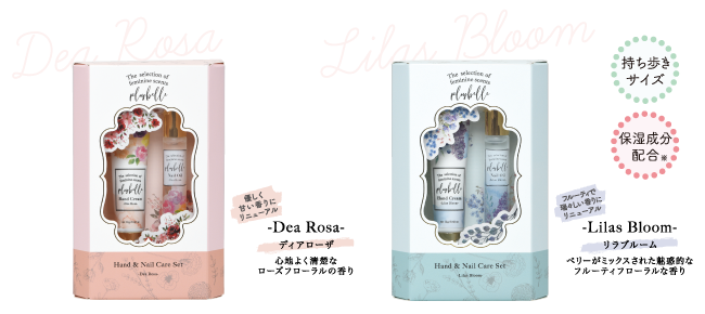 シリーズの中でも人気の高い「ディアローザ」「リラブルーム」2種の香り展開となっています。