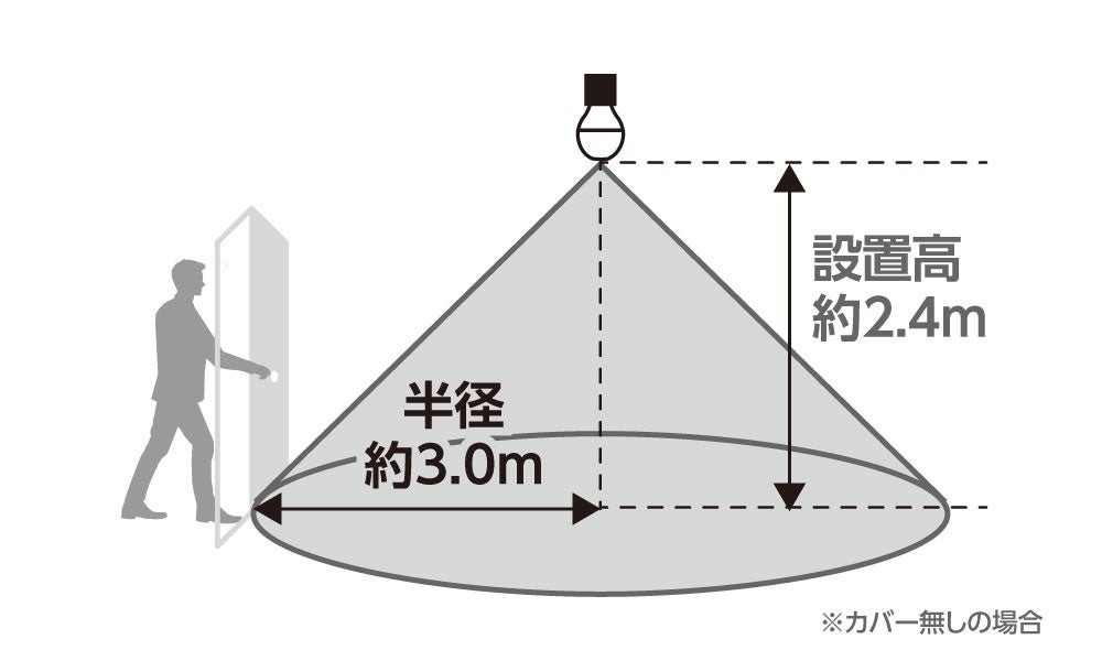 ※人や物の動きとらえて反応します。検知範囲内に人がいなくても点灯する場合があります。