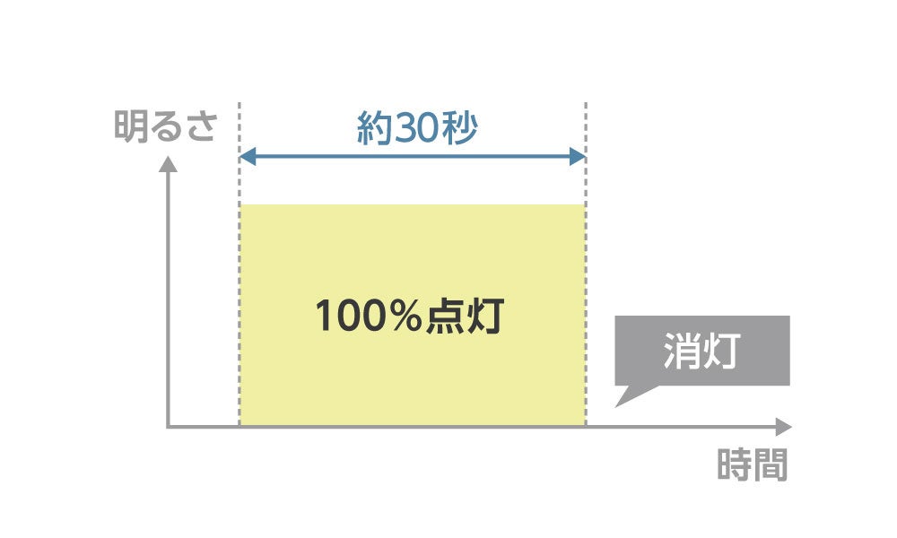 人や物の動きを検知しなくなってから、約30秒後に自動で消灯します。