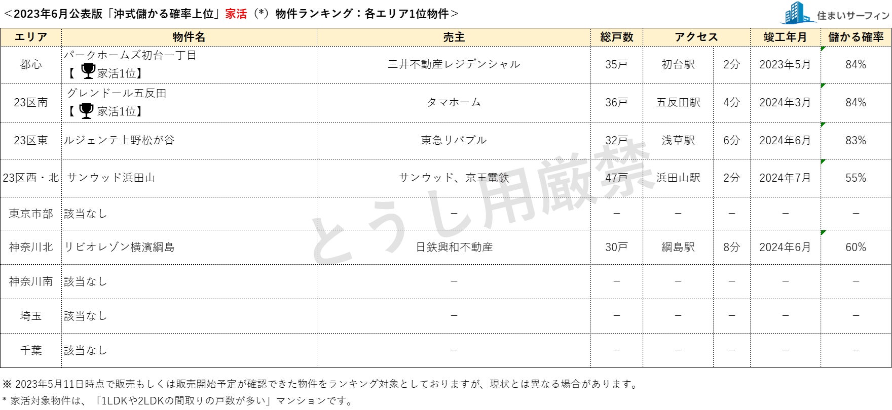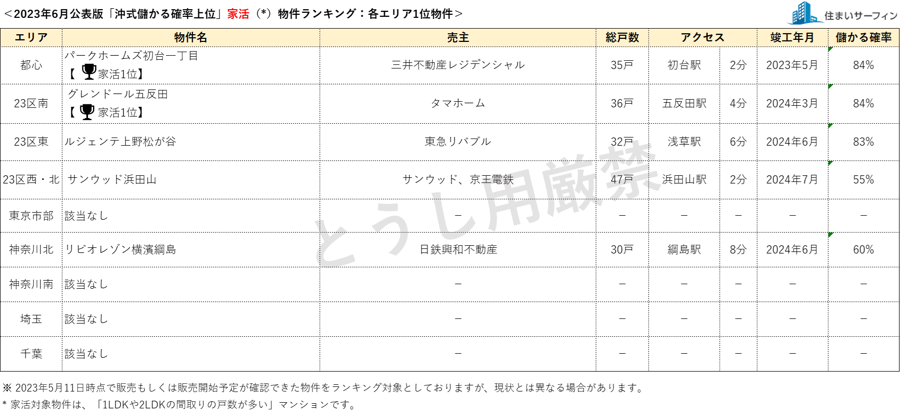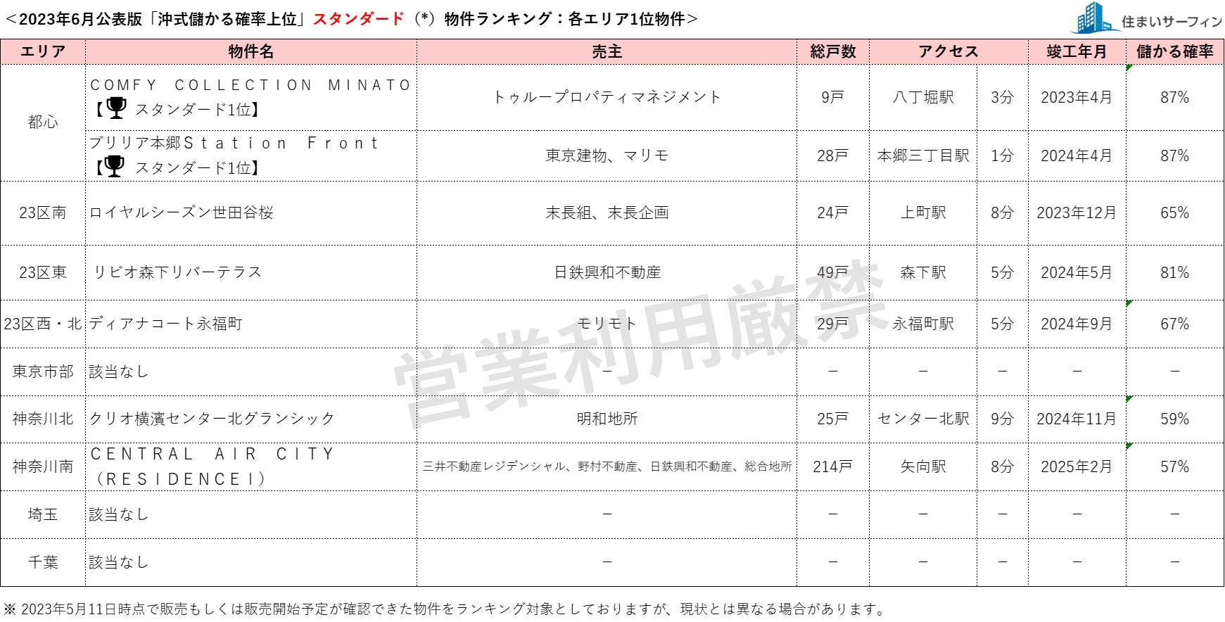 6月公表分は、2023年5月11日時点で販売もしくは販売予定が確認できた物件を対象としています。