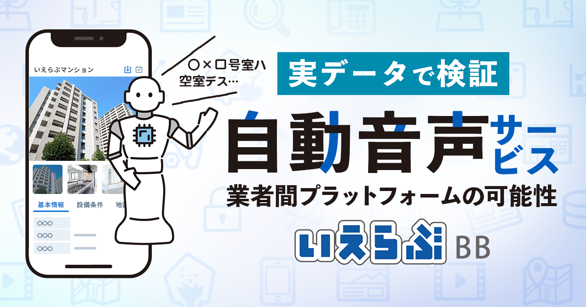 いえらぶGROUPでも、空室情報の自動音声応答サービス(IVR)「ぶっかく自動応答」や、リアルタイム空室情報をWeb上で確認できる「業者間サイト」を提供し、リーシング業務のオンライン化に貢献しています。