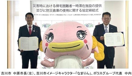 ポラスグループのポラス株式会社(本社:埼玉県越谷市、代表取締役:中内 晃次郎)、ポラテック株式会社 (同上)、グローバルホーム株式会社(同上)、株式会社ポラス暮し科学研究所(同上)は、埼玉県吉川市と「災害時における帰宅困難者一時滞在施設の提供並びに防災倉庫の使用に関する協定」を締結しました。 本協定は、災害時に交通の途絶等により帰宅困難者が発生した際、帰宅困難者の安全を確保するため、吉川市からの要請に基づき、当グループの複合施設「ポラステクノシティ」(所在地:埼玉県吉川市大字高久822)において一時滞在施設とトイレ・水道水・冷暖房及び電気設備等の提供を行うものです。また、吉川市の備蓄物資を備蓄するため防災倉庫を提供いたします。