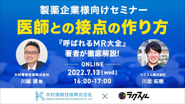 【2022年7月13日(水)木村情報技術×ラクスル共催セミナー】「呼ばれるMR大全」著者が徹底解説! 医師との接点の作り方