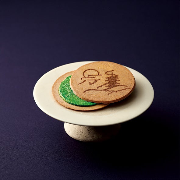 さくっ、ふわっ、濃厚!宇治抹茶の豊かな香りがひろがる和のゴーフレット。祇園の夜空にはんなり、浮かぶ月のようなまぁるい形のさくっとした米粉生地に、自慢の石臼挽き宇治抹茶を贅沢に使ったやさしい口どけの抹茶クリームをサンド。軽い食感の生地と濃厚な抹茶のハーモニーが楽しめる和のゴーフレットです。