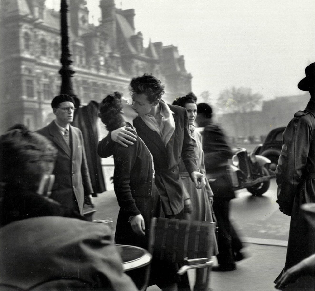 本展は、“職業写真家としてのロベール・ドアノー”に焦点を当て、当時の雑誌や広告の仕事から精選した38点を展示します。時代や国境を越えて愛され続ける「パリ市庁舎前のキス」は、1950年米国のグラフ雑誌『LIFE』から「パリの恋人たち」というテーマで依頼を受け撮影され同誌に7点の組写真として掲載された1点でした。この作品が一気に注目を浴びるようになったのは、それから約30年後のことでした。1979年に刊行された写真集『永遠の3秒(trois seconds d’éternité)』に掲載されたことが契機となり、この写真のポスター、ポストカードが販売され世界中に知れわたることになったのです。